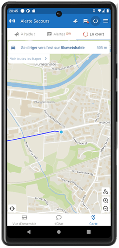 Alerte-Secours facilite votre intervention en cas d'incident. À réception d'une alerte, notre système de géoguidance intégré vous dirige vers les lieux, sans quitter l'application. Si vous préférez, optez pour votre application de navigation habituelle, comme Google Maps, Apple Maps ou Waze.
